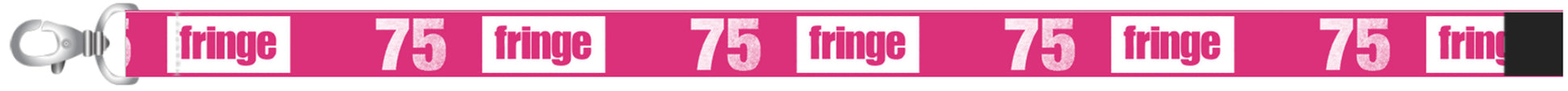 Bright pink lanyard featuring the 75 branding.